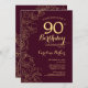 Burgundy Gold Floral 90th Birthday Party Invitation