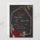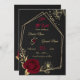 elegant romantic burgundy flowers and gold leaves on a geometric frame black save the date invitation
