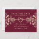 Romantic burgundy and gold floral save the date card, perfect for fall weddings. Elegant chinoiserie flowers and timeless calligraphy make this ideal for October or autumn weddings.