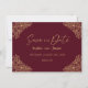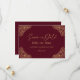 This burgundy gold floral flat save the date card features a gorgeous sophisticated dark merlot backdrop with elegant gold calligraphy and gilded floral embellishments. The jewel-tone colour story and the golden botanical boho accents together with minimal delicate script create a regal and romantic modern aesthetic that strikes a perfect balance between classic traditional vintage and contemporary casual, making it an easy choice for a diverse variety of weddings and events. As with all of our designs, if you have any questions or special requests for coordinating products, please reach out to us.