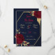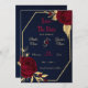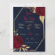 elegant romantic burgundy flowers and gold leaves on a geometric frame navy blue save the date invitation