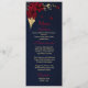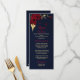 beautiful burgundy flowers and gold leaves elegant navy blue wedding menu.