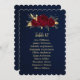 romantic burgundy dark red flowers and gold leaves navy blue seating chart card.