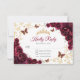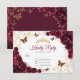 Burgundy gold floral Quinceanera RSVP reply card. Features, script font, gold butterflies, watercolor roses and tiara. Perfect for an elegant princess style glam celebration. Personalize with your own details.