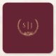 Burgundy Gold Floral Wedding Monogram Square Paper Coaster