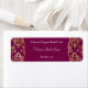 A soap and cosmetics label featuring a burgundy damask pattern in the background.