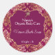 A product label featuring a burgundy damask pattern in the background. Has space for your logo.