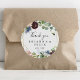 This burgundy gold geometric thank you wedding favour classic round sticker is perfect for a winter wedding. The elegant boho design features watercolor navy, blush pink and wine shade flowers with artistic penciled details.