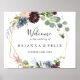 This burgundy gold geometric wedding welcome sign is perfect for a winter wedding. The elegant boho design features watercolor navy, blush pink and wine shade flowers with artistic penciled details.