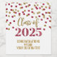 Graduation party custom wine bottle labels class of 2025 with burgundy and gold glitter pattern confetti.