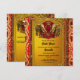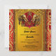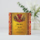 A beautiful golden background has a golden frame around it with small flourishes and crescent moons. The frame is bordered by a deep burgundy red border adorned with floruish swirls in a faux gold. Two Indian elephants are facing each other and are divided by a regal crest and crown set against a burgundy red circle edged with gold. Black text templates for your custom wording appear on the front and additional templates on the back enable you to provide more information about your event to guests and family members. If you would prefer to delete any details, simply remove the wording in the template to leave it blank. This stylish, elegant and traditional design is ideal for any Mendi bridal shower or for any Hindu or Hindi celebration. Spoil the bride to be with this ethnic asian upmarket, luxurious and bespoke square invitation