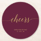 Burgundy & Gold Modern Lettering Cheers Party Round Paper Coaster