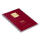 A burgundy background, golden text. Personalise and add your logo, monogram initials, name and a title. Your logo both on the front and the back. Space for your website address on the back.