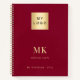 A burgundy background, golden text. Personalise and add your logo, monogram initials, name and a title. Your logo both on the front and the back. Space for your website address on the back.