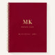 A burgundy background colour, golden text. Personalise and add your first name, monogram initials and full name, a title year.