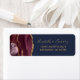 The left-hand edge of this elegant modern wedding invitation return address label features a burgundy watercolor agate border trimmed with gold faux glitter. The customizable text combines gold-colored handwriting and copperplate fonts on a navy blue background.