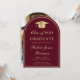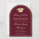 Classic arch-shaped burgundy red college graduation announcement featuring a gold grad cap, the graduate's name and class year in an elegant gold script, and their university, major and honours. Their photo fills the back of the card.