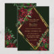 This elegant and chic wedding invitation is perfect for the winter months. It features a Christmas and holiday vibe with its hand-painted burgundy red, forest green, and faux gold poinsettia flowers, holly berries, and ivy leaves on top of an artsy faux printed gold-painted diamond border and simple burgundy red and forest green background. It's artistic, luxurious, modern, unique, and original; the perfect design to impress your guests. Stylise your invites with this watercolor painted design done by the artist of La Femme, Rachel Matheney.