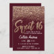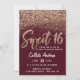 Burgundy Gold Scattered Glitter Ombre Sweet 16 Invitation