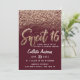 This unique and pretty Sweet 16 invitation design features faux printed glamourous sparkly gold custom handwritten brushstroke typography and scattered glitter in an ombre gradient effect on top of a burgundy red background. On the back displays a large chic, glitter number 16. This elegant, stylish, and artsy design is perfect for the modern and glam birthday girl. Make your daughter's event pop and shine with this girly and trendy option for her party. Click on the "details" button to personalise it with your information.