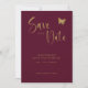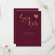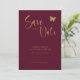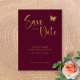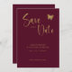 Burgundy & Gold Script: Glitter Butterfly Wedding Save The Date