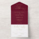 Burgundy Gold Script Hearts Minimalist Wedding All In One Invitation