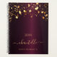 A dark burgundy background, decorated with faux gold dripping stars. Personalise and add a name and a title. The name is written with a golden modern hand lettered style script with swashes. Perfect for school, work or organising your personal/family life.