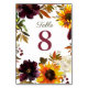 Burgundy & Gold Sunflower Wedding Invitations Table Number