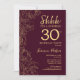 Burgundy Gold Surprise 30th Birthday Invitation. Minimalist maroon modern feminine design features botanical accents and typography script font. Simple floral invite card perfect for a stylish female surprise bday celebration.