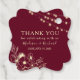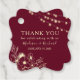 Romantic favour tag with a deep burgundy background, glowing string lights, and gold floral lace. Personalise with your names and date for a heartfelt finishing touch on wedding favours, bags, or gifts. Perfect for rustic, fall, or elegant celebrations.