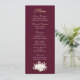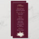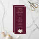 This burgundy menu with gold and white script is simply elegant. A floral bouquet graces the bottom of the menu. The couple's names are on the back with a gold ampersand. Perfect for any occasion ... all fields can be customised for your luncheon or dinner. Optional names on back for weddings and anniversaries