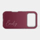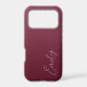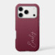 A trendy personalized burgundy iPhone case, with a soft gradient design and modern calligraphy script font.