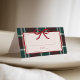 Burgundy Green Plaid Christmas Bow Wedding Place Card
