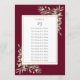 This elegant greenery eucalyptus leaves table seating chart features delicate watercolour leaves on a burgundy red background, with your guests' seating plan framed by a gold border. Designed by Thisisnotme©