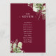These elegant burgundy red botanical greenery leaves wedding table numbers can be personalised with your guests' seating plan set in chic typography. The cards are printed on the front and back (double-sided). Designed by Thisisnotme©