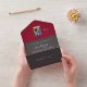 This all in one wedding invitation card is special. You get your invitation card and the RSVP card all in one. You can customise the modern and elegant wedding invitation card with your couple photo, Intro, names, occasion, date, adress, rsvp, meals and other background colours to your preferations. Even the image is changeable. It shows a harmonious blend of burgundy + grey and it has fitting white typography. It is a simple minimal fancy design with fitting burgundy + grey tone backgrounds. You can elegant seal and send this trifolded budget wedding invitation. Send the tear off RSVP Postcard back to the sender. Make this special design yours and feel like the elegant future couple to be. Hobinishop