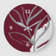 Burgundy & Grey Minimalist Watercolor Leaves Large Clock
