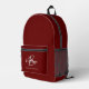 Burgundy Grey White Script Monogram Name Printed Backpack