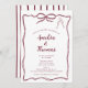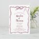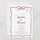 Burgundy Hand Draw Doodle Wavy Border Bow Wedding Invitation