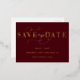 Burgundy Script Stylish Handwritten Calligraphy Wedding Save the Date Announcement Foil Postcard