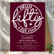 Burgundy Hello Fifty 50th Birthday Invitation