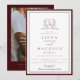 Burgundy & Ivory botanical crest monogram wedding Invitation