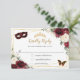 Burgundy Ivory Floral Quinceañera Butterflies Mask RSVP Card