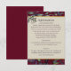 The burgundy wedding information features watercolor botanical artwork of flowers and foliage, and gold frame.. Customise the text to suit your event.