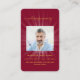 A burgundy background, a Space for your photo. Light beams, behind the photo. Personalise and add name, dates and your text and prayer.