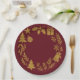 Burgundy Luxurious Gold Wreath Classic Christmas Paper Plate