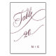 Burgundy Luxury Calligraphy Wedding Number 20, Table Number