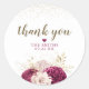 Burgundy Maroon Gold Glitter Floral Wedding Favour Thank You Classic Round Sticker