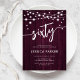 60th Birthday Party Invitation. Rustic design with burgundy maroon wood pattern. Classy invite card featuring fairy string lights and white script font. Perfect for a stylish sixtieth bday celebration. Personalize with your own details. Can be customized for any age! Printed Zazzle invitations or instant download digital printable template.