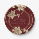 Burgundy Maroon Wedding Gold Floral Wreath Holiday Paper Plate